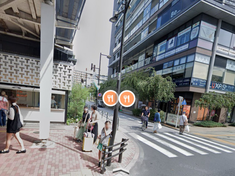 中目黒駅正面口を出て目の前の横断歩道を渡ります。